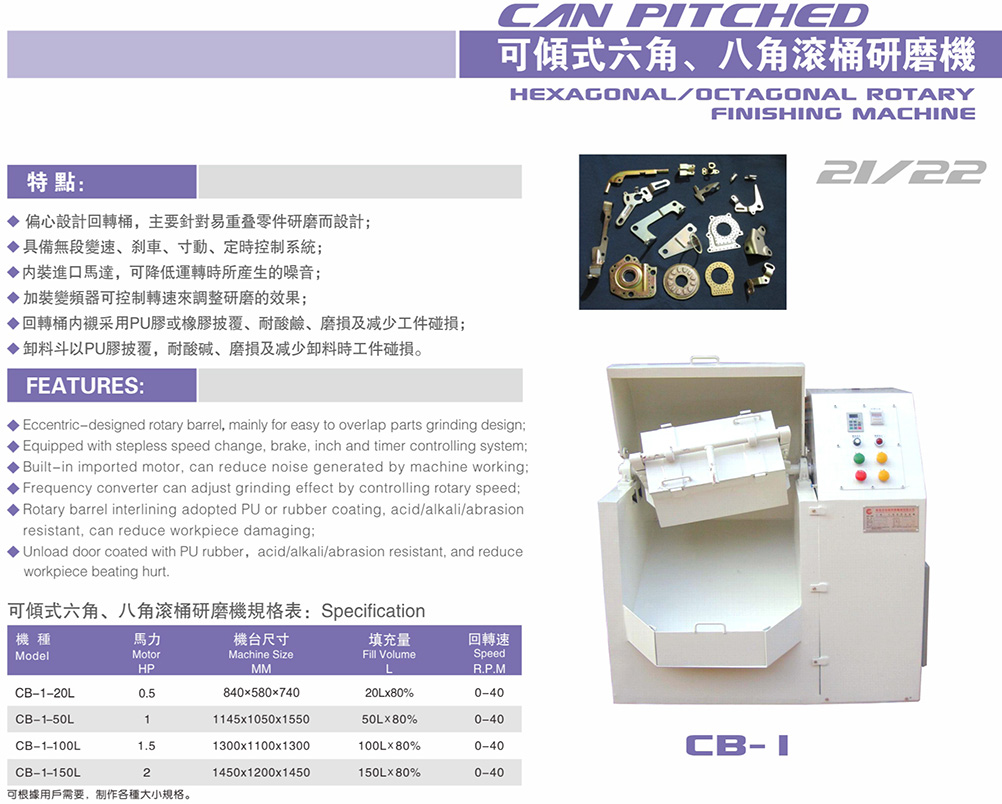 可倾式六角、八角滚桶研磨机