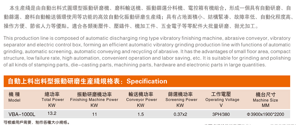 VBA-1000L自动上料出料振动研磨生产线