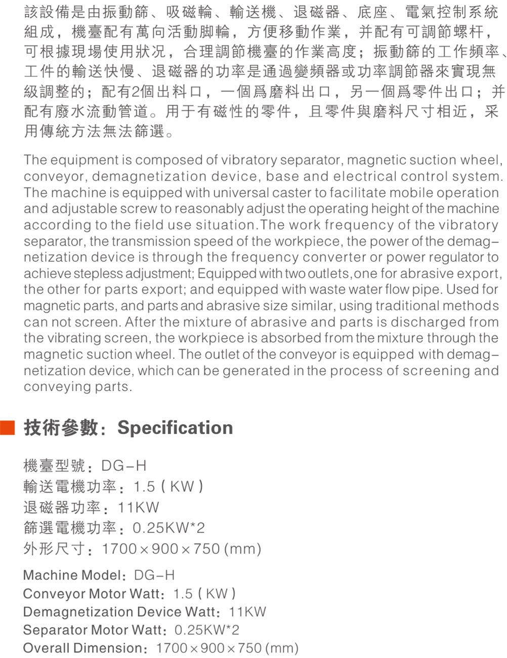 DG-H振动式磁性分料机